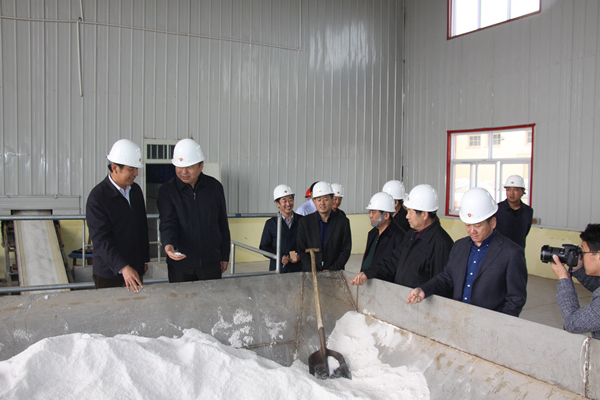 魏国权一行参观了精盐分厂食用盐生产线,详细询问了产品结构、食盐产量、安全质量、市场供应等方面的情况。