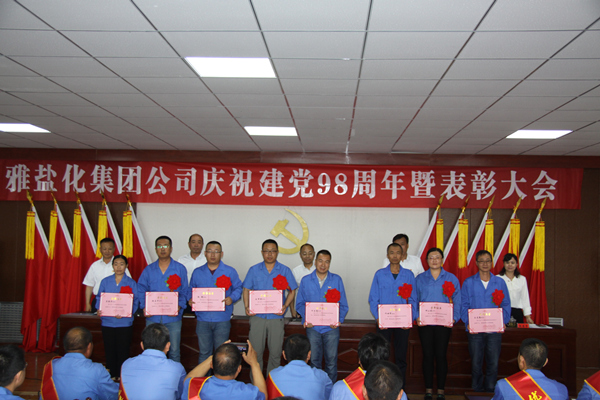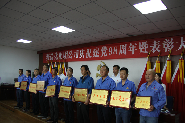 会上,公司党委委员、雅染公司董事长李玉明宣读了《华体会 – 华体会平台 – 华体会官网 关于表彰2018年度先进集体和先进个人的决定》,党委委员、副总经理徐宪国宣读了《内蒙古雅布赖盐化集团公司党委关于表彰2018-2019年度先进党支部、优秀共产党员、党务工作者的决定》。在欢快的乐曲声中,出席会议的领导为获奖的先进集体和先进个人代表颁发了奖牌和荣誉证书。