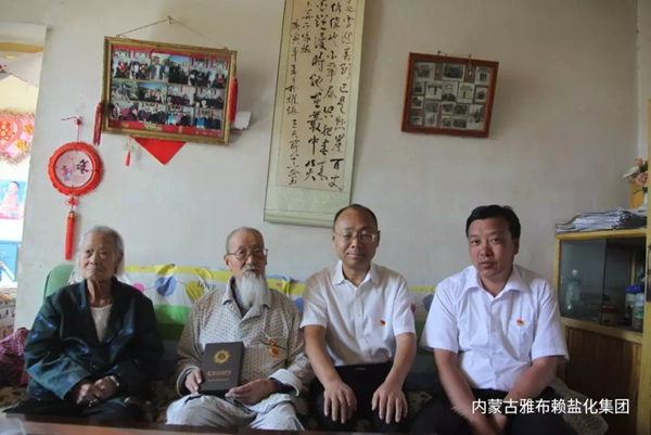 该纪念章是中共中央向中华人民共和国成立前参加工作的健在的老战士、老同志颁发,由公司党政代为发放。走访慰问过程中,集团公司党政领导同王天莳老人促膝交谈,细心询问他的健康、生活以及家庭子女等情况,叮嘱他保重身体、幸福安康,并亲手为他佩戴纪念章。