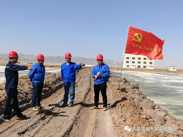 在积极协调推动下,5月26日,再生盐投料生产,为最大限度满足销售需求,党支部指导采盐再生盐一班改变集坨方式,采用滩晒方式,以快速降低再生盐水分,为用户提供合格满意产品。